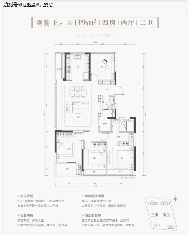 139平米“竖版”户型,得房率高达约93%,空间利用率卓越; 南向三卧设计,采光充沛,完美适配二胎及三代同堂家庭需求; 客厅面积约37平,开阔大气,并配备约2.6平独立储物间,实用性强。