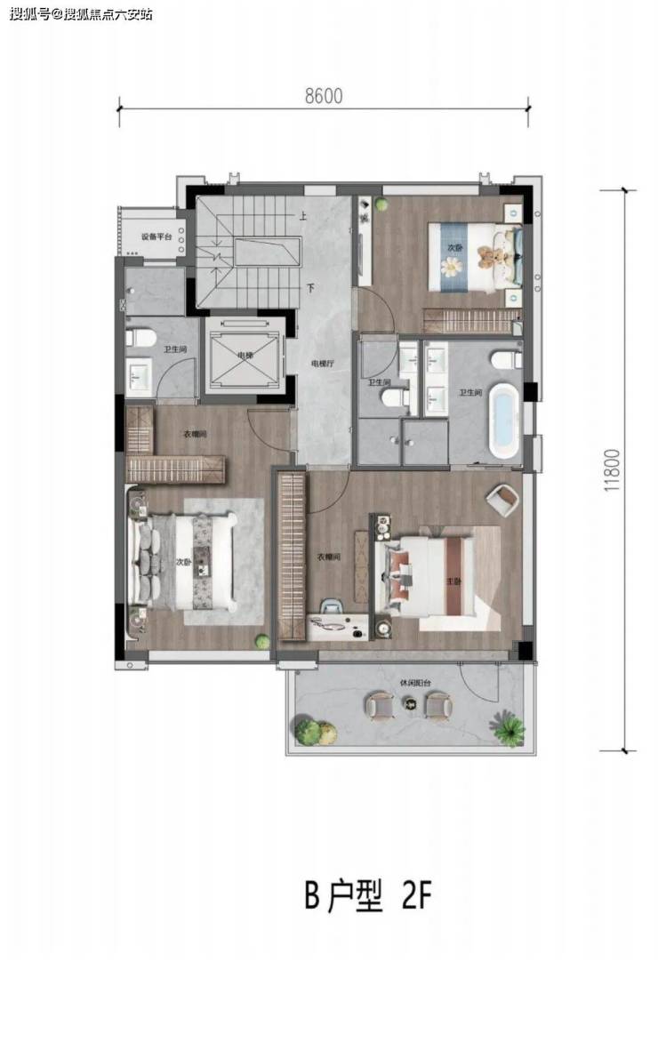 285㎡:地上四层+地下挑高,全套房设计,南向面宽8.6米,庭院60㎡,露台70㎡,适合三代同堂。