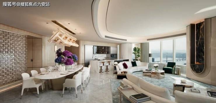 弹性空间设计打破传统格局,一层三户的配置中,A户型约900平,为最大最贵最好户型;B户型约750平,性价比最高;C户型约1100平,但无江景。这种空间革新满足了塔尖人群对居住尺度的极致追求。