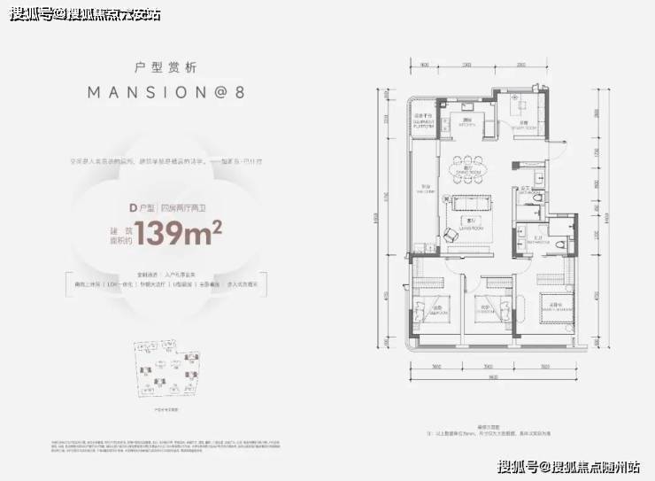 建面约169㎡旗舰四房:边厅设计+270°飘窗,主卧独立衣帽间+双台盆卫浴,空间尺度媲美豪宅。