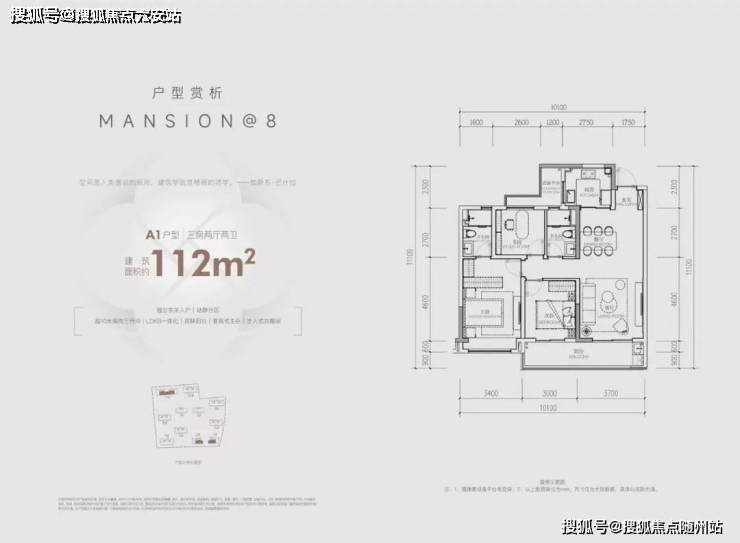 建面约112㎡三房两卫:三开间朝南+6.7米双联阳台,主卧套房设计,动静分区满足三口之家需求。