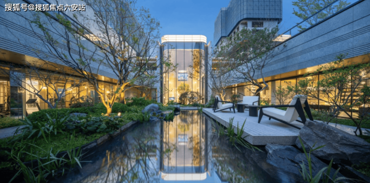 午后斑驳树影坠入涟漪,恍惚分不清是「第二会客厅」还是艺术馆,建筑细节控狂喜 ,弧形超大玻璃模拟和田玉光泽🪟