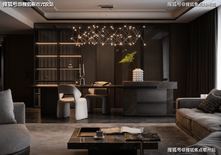 除了尺度感,臻奥院的归家仪式感和园区度假感也被“拉满”。回到小区,首先映入眼帘的是一片星光雨帘,水系前的雕塑,是一个醒目的“ONE”,在夜间尤其熠熠生辉,似乎提醒着业主,全城瞩目的两个“ONE”,在这里完成了时代的接力。