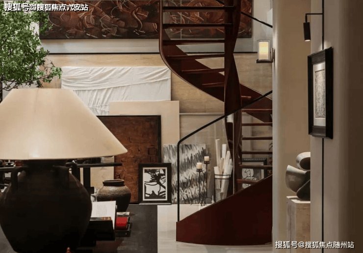 负一层至夹层打造垂直艺术核心区域,油画工作室、围炉品酒区、作品展廊等自由串联。