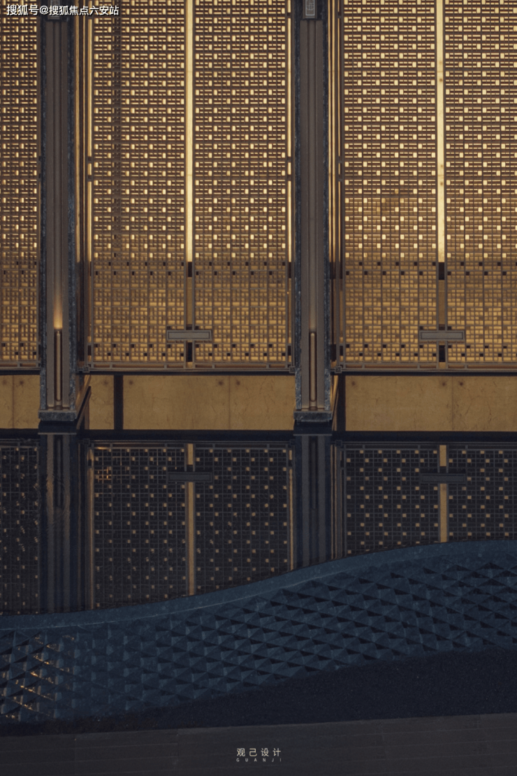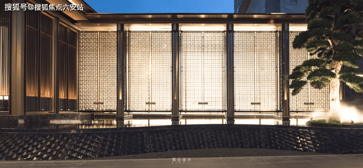 格栅的光影落于水面,又为这景致添了几分层次,让整个前场空间满是蓬勃生机,仿佛自然的灵韵与匠人的巧思在此处完成了一场跨越时光的对话。