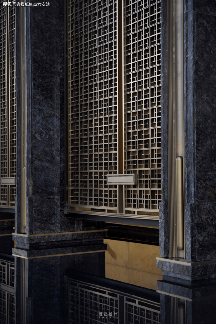在四面大面铝板+大面玻璃基础上,西源赋叠墅的立面注入了东方美学,中间飞檐翘角、花窗阑干元素,屋顶官帽挑檐,起伏宛转,气场全开。