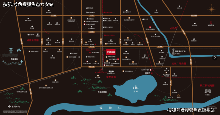 文鸿金座所处黄龙CBD核芯,这里是杭州行政、金融、教育资源最集中的真正市中心爵版地段,一脉西湖,贵隐黄龙,由国企匠心打造新西湖商务私域,擎画黄龙CBD商务空间新格局。