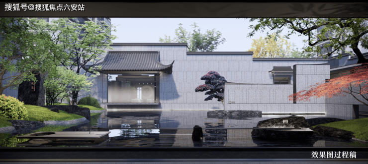 建筑风格:新中式风格,外立面采用三面铝板、首层石材、玻璃及浅灰深灰涂料,线条简洁雅致,彰显现代时尚感与文化底蕴。