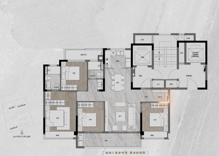 注:本户型为建面约129㎡※边套户型,中间套户型主卧窗户大小及形式与本示意图略有区别,最终以报规图纸及商品房买卖合同为准。