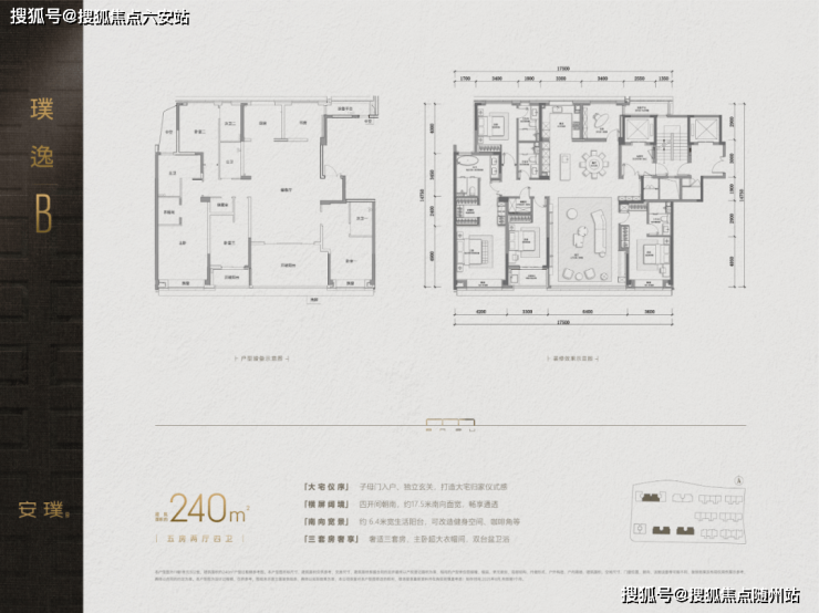 在户型设计上,安璞同样表现出众。约210㎡户型为五房三卫,其余户型均配备四卫,并实现三间套房布局,极大提升了居住的私密性与舒适度。