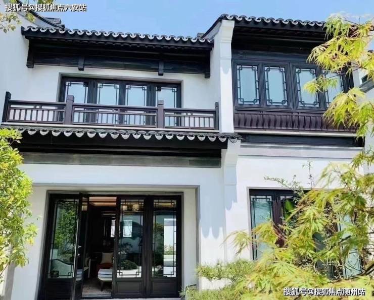 徽派建筑精髓:粉墙黛瓦、飞檐翘角,联排别墅层高6.6米,配挑空客厅与星空露台,引自然光影入室。