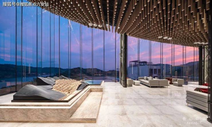 我观摩“光之丘”的时间更早,开放首日便迫不及待站在最佳视角的270度环幕落地玻璃前,只见对面山上的苍松翠柏,高下相间。