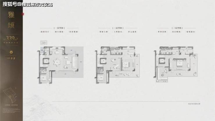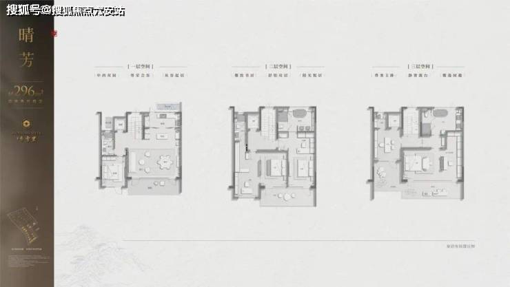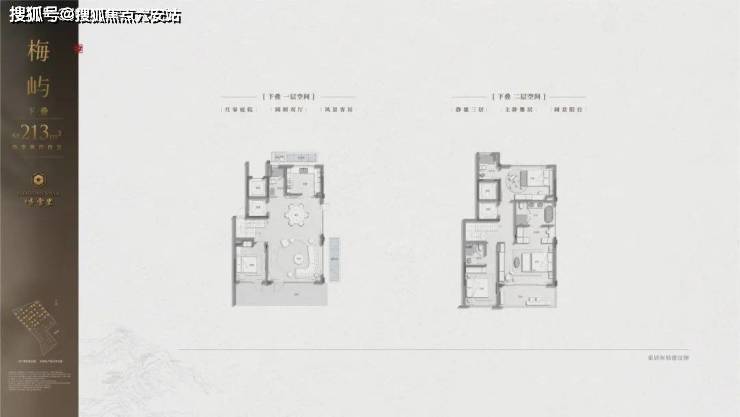 最迷人的要属建面约339㎡西边套,每一层皆有L型环绕式檐廊、阳台或露台,一层一天地;主卧更独占三楼,躺在大床上,就可以看到漫山梅花。