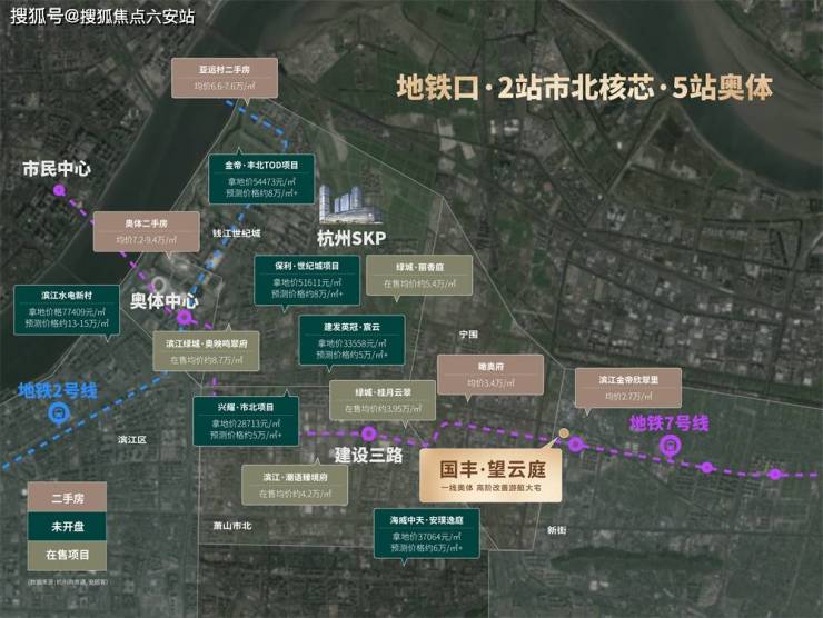 ▪一线奥体:2⃣站市北核心、5⃣站奥体中心、6⃣站钱江新城/萧山机场