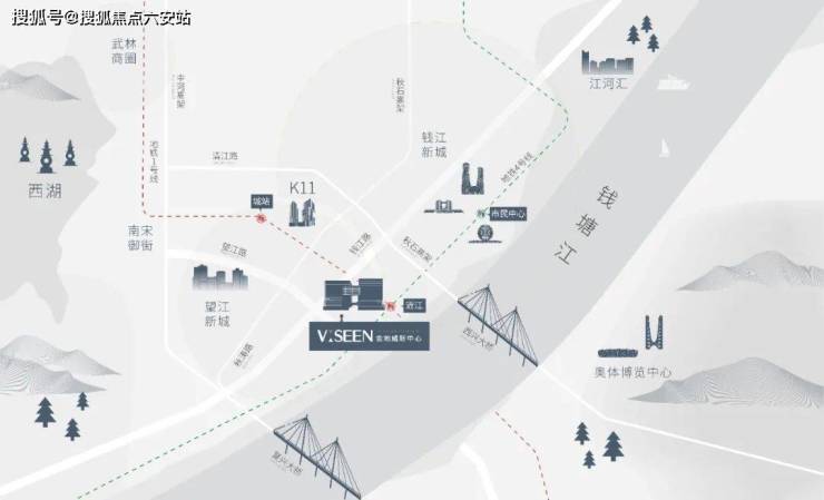 核心地段:地处钱江新城与望江新城双城核心交汇处,直线距离西湖约2公里、钱塘江约600米。
