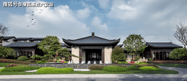 建筑风格:GAD 绿城设计,宋式悬山顶 + 现代铝板,新中式水墨质感