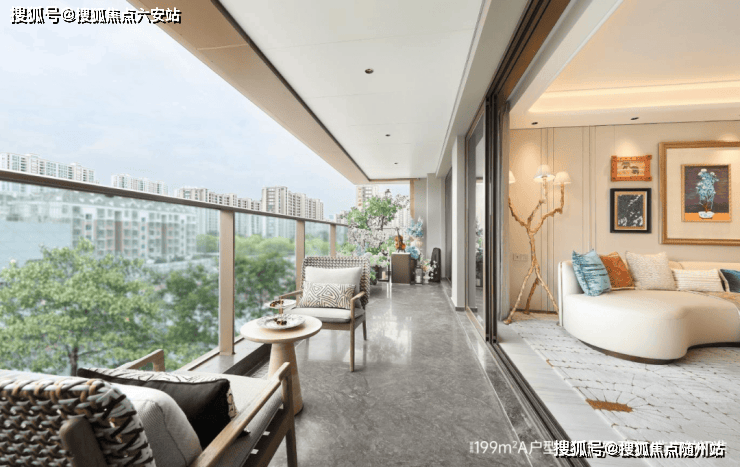 199㎡A户型分布在1号楼,南向四开间,三卧朝南,独立玄关设计,餐客厨一体化。B户型分布在2-3号楼,类4+1房格局,约50㎡奢阔通厅,7.2米跑道式阳台。户型采用LDKB一体化设计,南接约8.5米跑道式阳台。