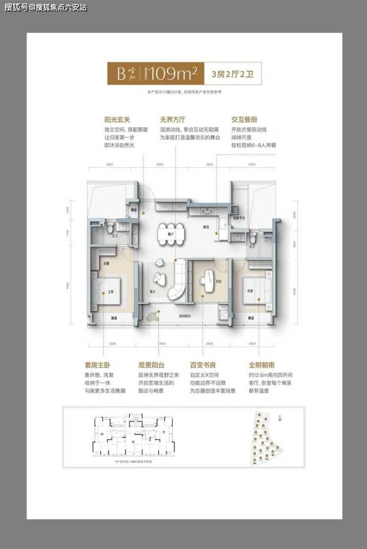 规划建面约104-169㎡全龄改善户型,满足不同家庭的需求。多个户型做到了大面宽朝南,如105㎡南向采光超10米,109㎡、139㎡和169㎡户型均为四开间朝南,南向开间达17米,采光通风极佳,为生活提供更多自然光条件。