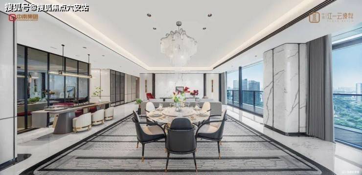 进入室内,玄关处“宝格丽白”和“黑白根”组成的地面宛若艺术品。纯手工拼接的工艺,让它的造价是传统的十倍以上。4.2米的奢适层高搭配上约90平米的餐客横厅,以及五套房两厅六卫、全屋声控智能化系统的奢华配置,尽显凌云生活的从容大气。