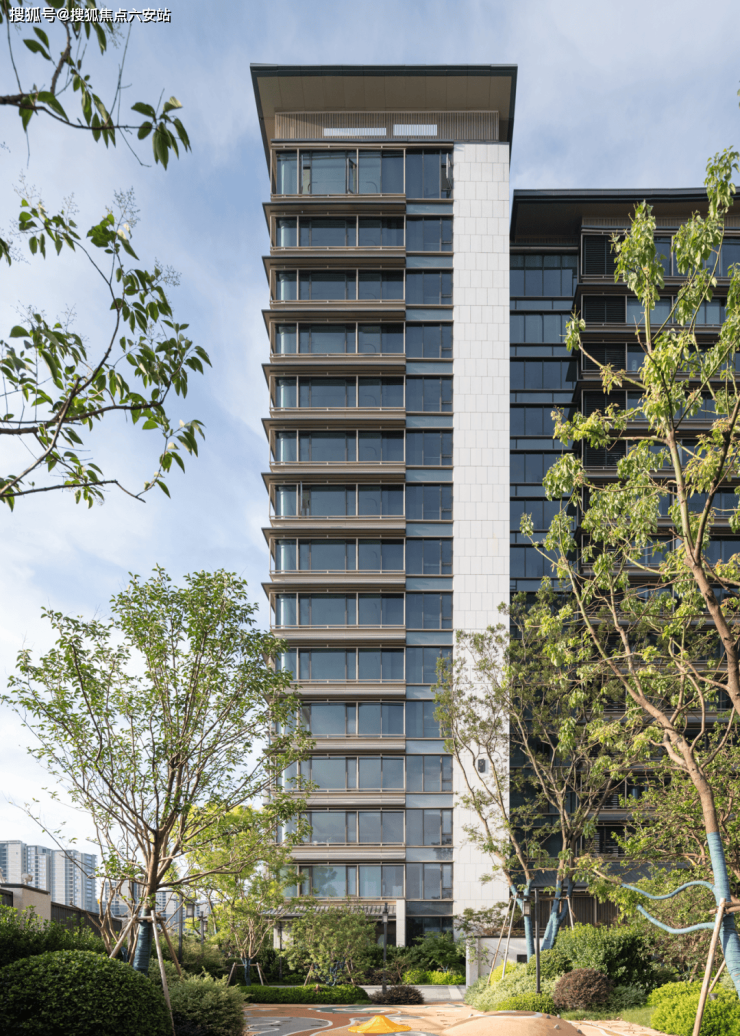 建筑风格:采用新中式风格,外立面为全景大落地玻璃幕墙、铝板、石材组合,既有中式韵味又具现代感。