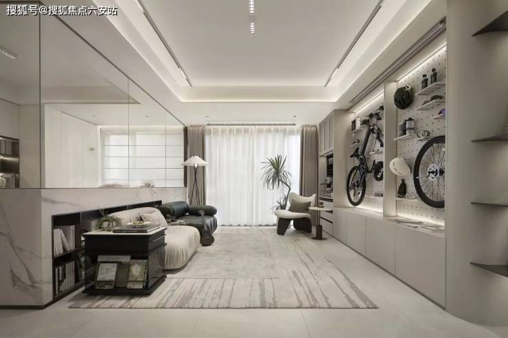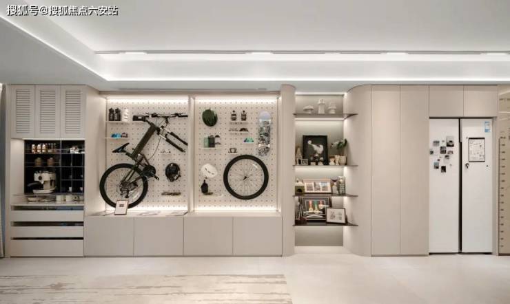 还有客厅中那一道最“惹眼”的玻璃墙下方,也预留出了“落地开放格”(仅为样板房示意,具体以交付为准),年轻人钟爱的小茶几、移动零食架、孩子的玩具绘本……都可以随取随放。