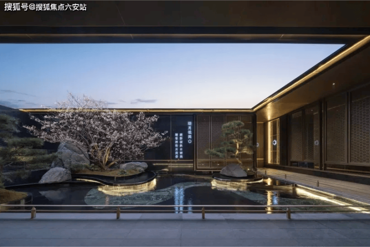 首入“玉梅长亭”,隐奢门庭过滤城市喧嚣,只留一缕梅香引路;“明月松间”镜面水景映松影明月,心境渐静;“行云流水”水榭与倒影构成虚实画境,尽显东方留白美学;“春溪照影”以廊架串联自然,理水叠瀑;“风递暗香”巷道花墙掩映,石几茶台邀人品茗;终抵“倚梅明窗”私家庭院,月光梅影间身心皆归安宁。
