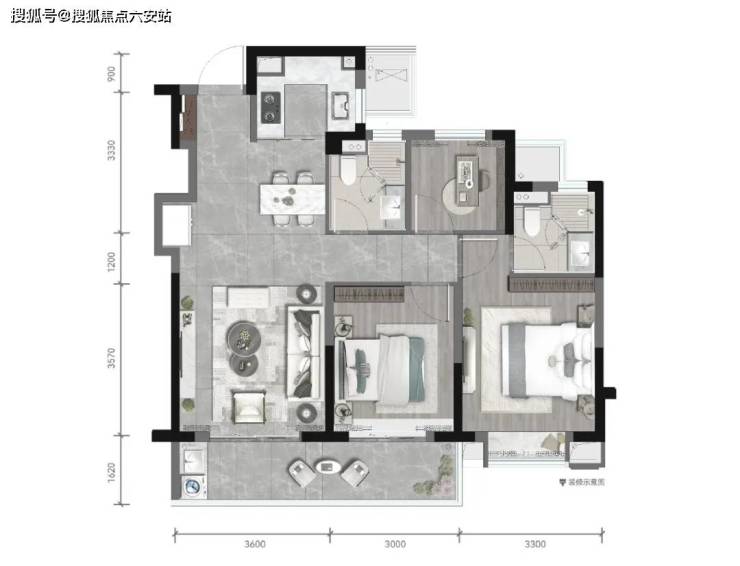 建面约99㎡三房:南北通透,动静分区,刚需家庭优选;