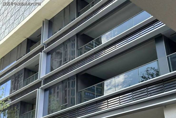 高层外立面,创新性将横向铝材、均釉陶砖、玻璃、石材等材质相结合,很有层次感和艺术张力,显得又美又贵。
