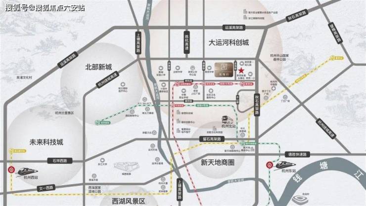 地铁方面,项目近距离靠近4号线和规划中的15号线。高架方面,向东约1.5公里是秋石高架,往北约2公里是运溪高架,向西连通上塘高架,实现了南连武林,西抵云城、未来科技城的交通格局,形成了半小时杭州生活圈。