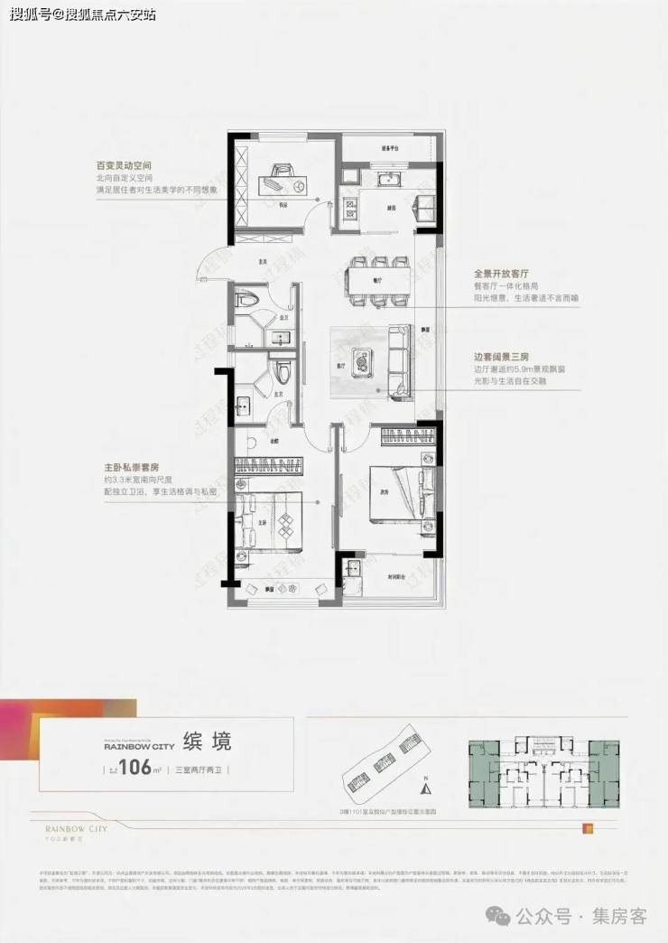 还有一款建面约106方: