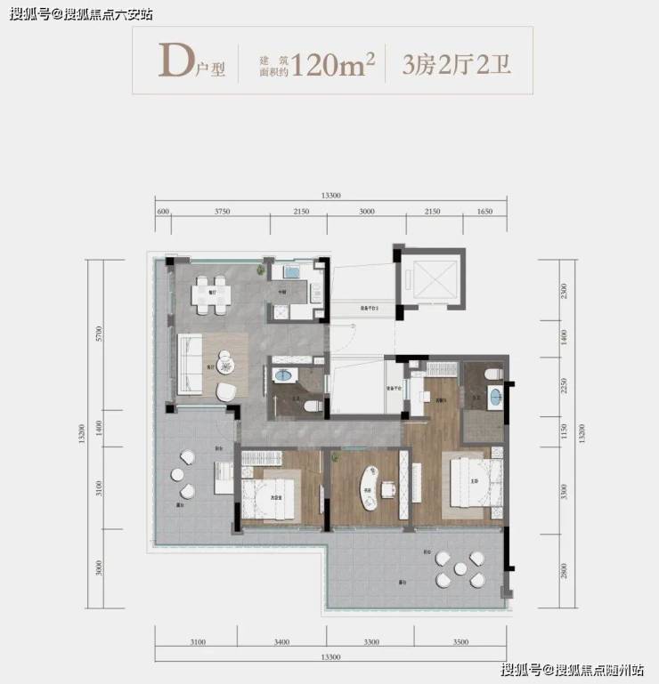 最迷人的要数顶楼边套的120㎡,3房2厅2卫的格局,客餐厅和所有卧室都朝南,面宽阔达约13.3米,且每一间都连着屋顶大露台!