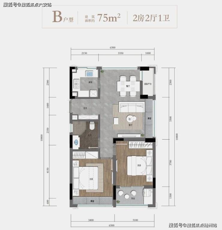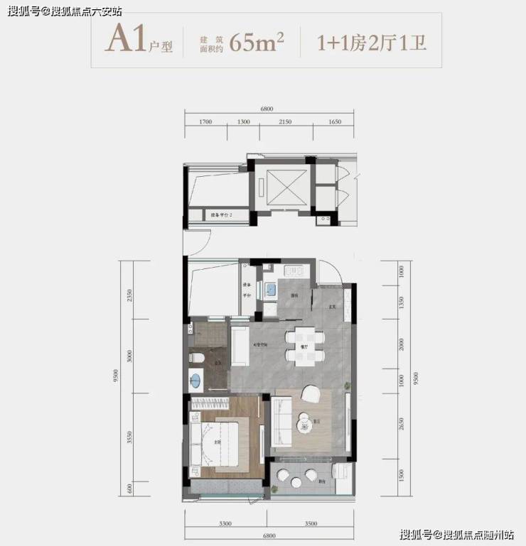 建面约65㎡的这款主力户型,设计为1+1房2厅1卫的格局,尽可发挥想象,随心而变。