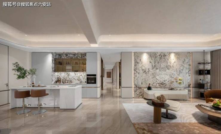 国际品牌配置:选用德国柏丽橱柜、意大利鱼肚白大理石、全屋智能系统及双台盆主卫,精装标准超1万元/㎡。