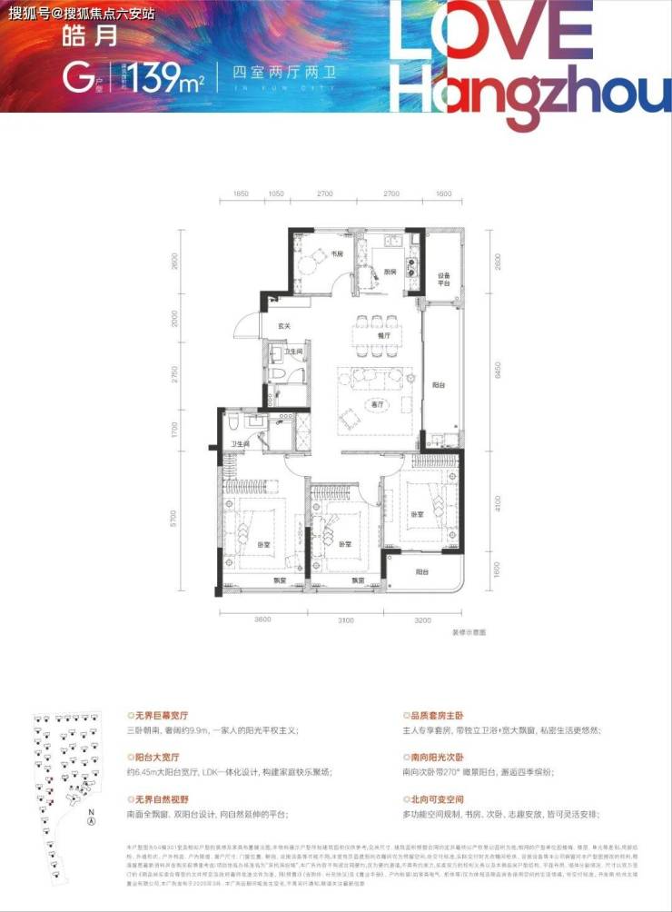 建面约139㎡大四房首次绽放。270°环幕瞰景,双阳台设计,让空间向风景打开;三卧朝南,演绎一家人的阳光平权主义。更有大阳台宽厅,安放家庭活动时光,爱和陪伴随时幸福上演。