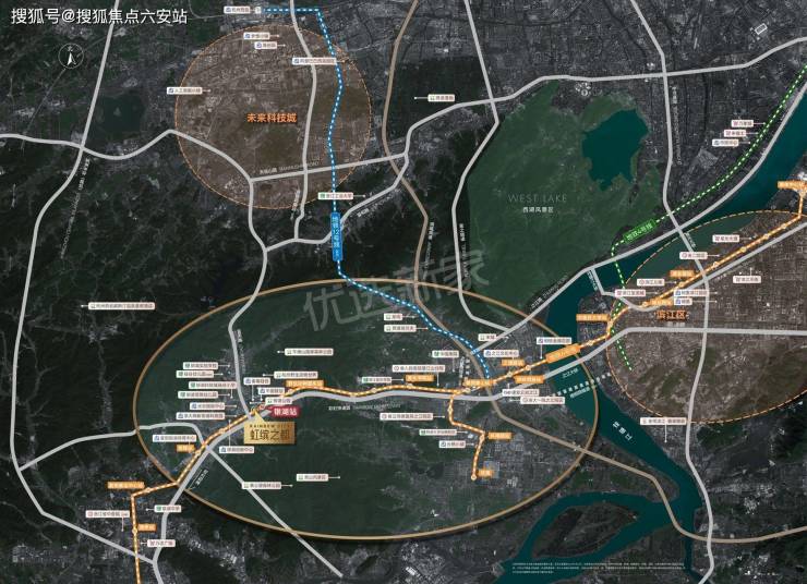 路网体系:通过彩虹快速路25分钟直达滨江,经杭淳开高速45分钟连接未来科技城