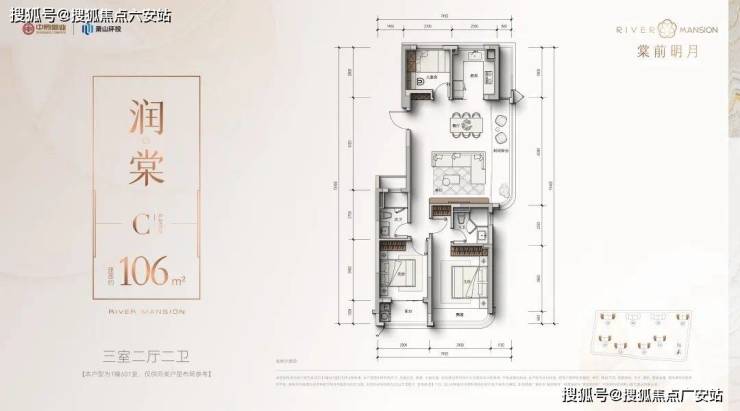 建面约106方三房两卫: