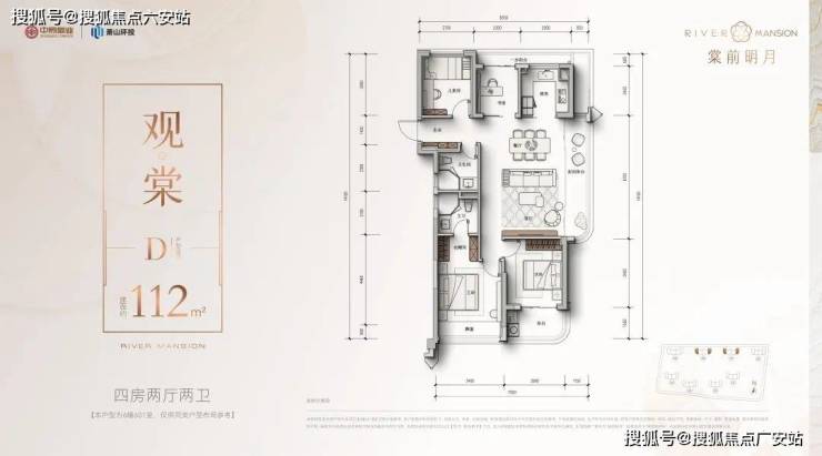 建面约112方四房两卫: