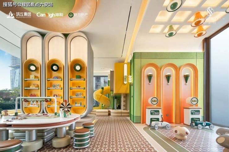作为新规后的项目,咏舟府不仅做到了全架空,功能性也非常丰富,打造了2个童玩主题,还有专门的老年主题,女性主题等功能空间,在6幢的架空层里更有专门的labubu主题轰趴馆空间,搭配抬升设计特有的城市阳台空间。