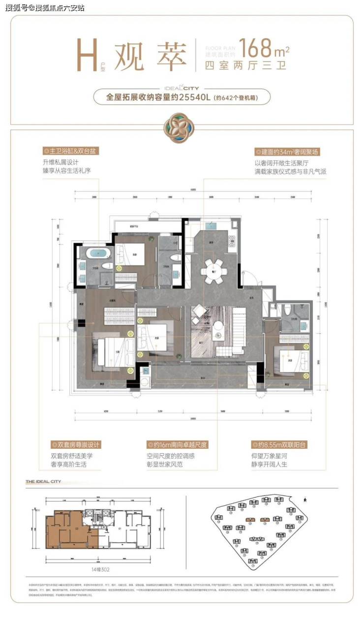 2号线地铁口,滨绿造,带近千方下沉式会所;1站金地广场,2站西田城,3站万象城;四面铝板公建化立面,2万+高品质生活住区,赠送柜体收纳