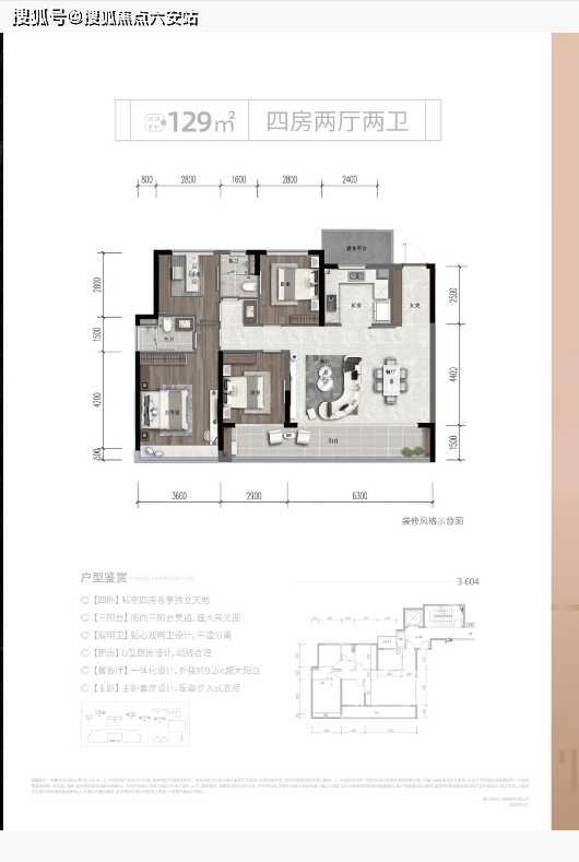 户型设计:96-143㎡全能空间,南向大面宽、跑道式阳台,精装交付标配凉霸、干湿分离卫浴,细节关怀无处不在。
