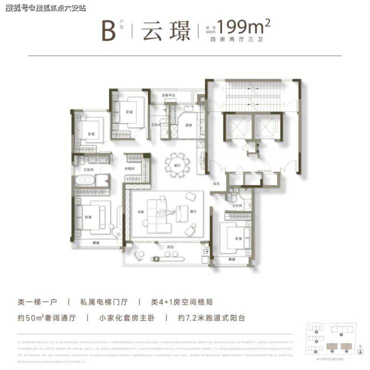 宸云首先以极度纯粹的圈层构筑了护城河。整个小区共164户,在动辄上千户的世纪城新房中,堪称“精巧”。更重要的是,它是板块核芯区带有排屋的低密住区,其高层产品均为清一色199㎡大户型。此次取证加推的正是这一主力户型,席位有限,注定了其房源的稀缺属性。
