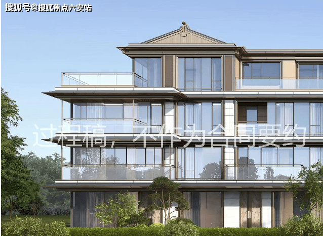 建筑风格:采用宋韵美学与现代极简融合的设计,立面以香槟金铝板与白金石材搭配,飞檐、镂空花格等元素体现东方雅韵。