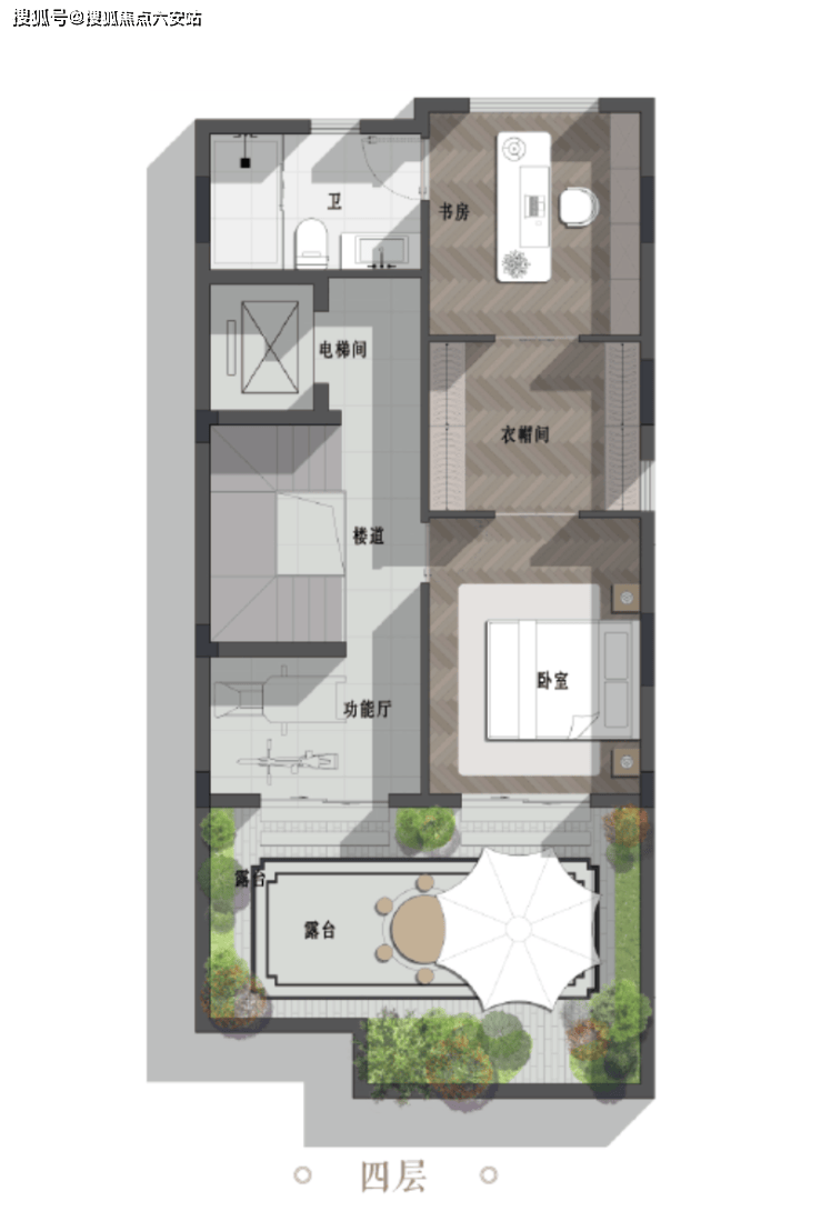 除庭院、露台构筑起的“四园”外,金云院还有分层景观阳台、双层挑空地下两大空间,为人居构建起"天-地-人"立体融合的生活场,以六重空间回应家族院居的向往。
