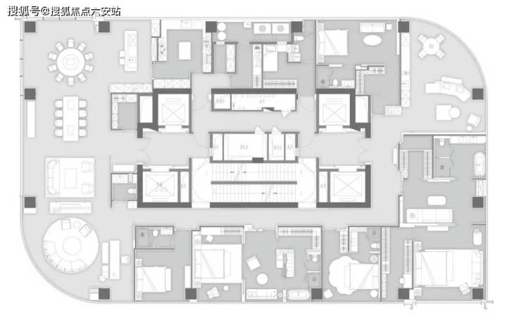 在设计理念上,胤璞大平层邀请了VAL国际建筑设计创始人姜宇捷、真工建筑设计创始人程绍正韬、CCD香港郑中设计事务所创始人郑忠等国际设计大师联袂操刀。团队以“百年传承的建筑艺术”为核心理念,通过流畅灵动的曲线建筑形制、合金板与全画幅超白玻等臻材运用,打造出一座经得起时间考验的建筑地标。三幢彼此呼应的楼座,规划有总部办公与平层公馆,并配有高端餐饮、健身泳池、艺术长廊以及生活服务等业态,和谐融入城市环境,创造作品的传承感。