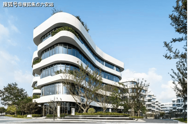 园区设计融合“城市未来派”风格与包豪斯设计理念,外立面采用流线型玻璃幕墙与香槟金铝板,打造螺旋上升的室外花园和立体绿篱,形成“空中花园”与“城市绿岛”的生态景观。建筑内部层高约7.2米,柱距约9米,空间灵活多变,适配不同业态需求。