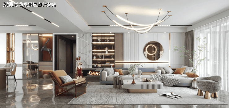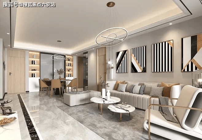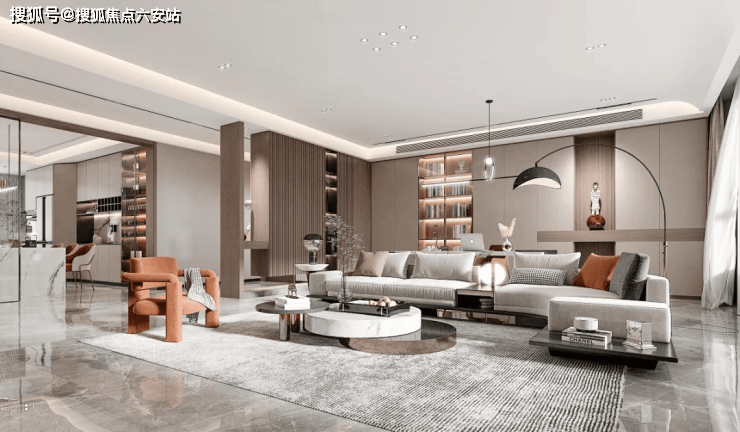 首先是尽量灵活,富華里把客厅设计成围合式会客区+贴墙布置家庭工作区,既可以根据需要随时变换家具位置,中心空间方便调整,适应家人在同一空间的不同活动,做到互不干扰又相互陪伴。