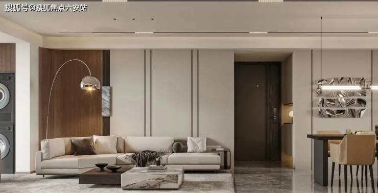 客厅连接南向约10.5m三联宽幕阳台,增加了室内空间延伸性,创造无边界的视觉效果,闲致生活自得逸趣。
