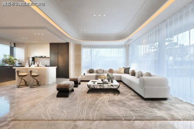 搭配摩根智能控制系统、地面全天然大理石、电视背景墙、卧室背景墙以及墙面皮革等全都是交付标准。
