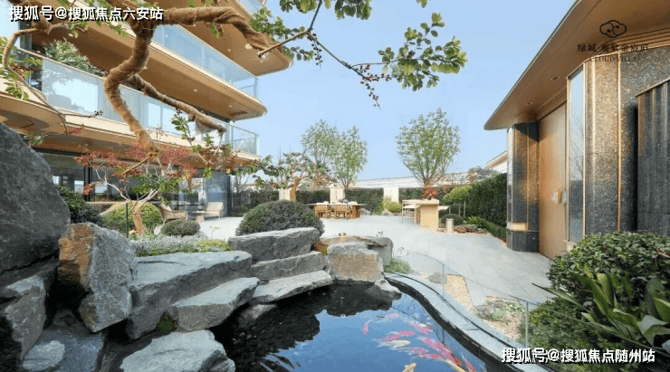 约3200㎡的下沉式会所中,约350年树龄的紫薇老桩静立其间,无声地标注着这座园区的品质高度。