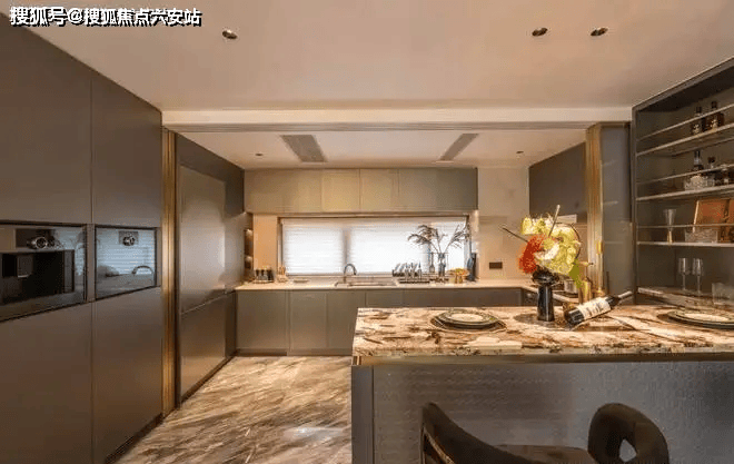 更令人惊艳的是背景墙铺装潘多拉奢石、地面铺装佛罗伦萨灰奢石、主卧卫生间铺装鱼肚白大理石,让业主在日常起居中,就能感受到触手可及的奢华与雅致。